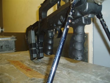 De manière moins provisoire, on peut voir des accessoires directement vissés sur le fût comme une poignée pistolet (sur les 1ères photos, ce sont des poignées de Famas).