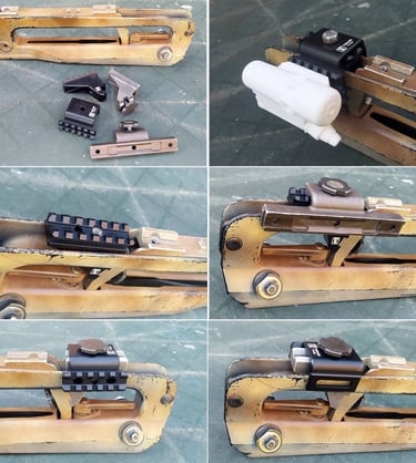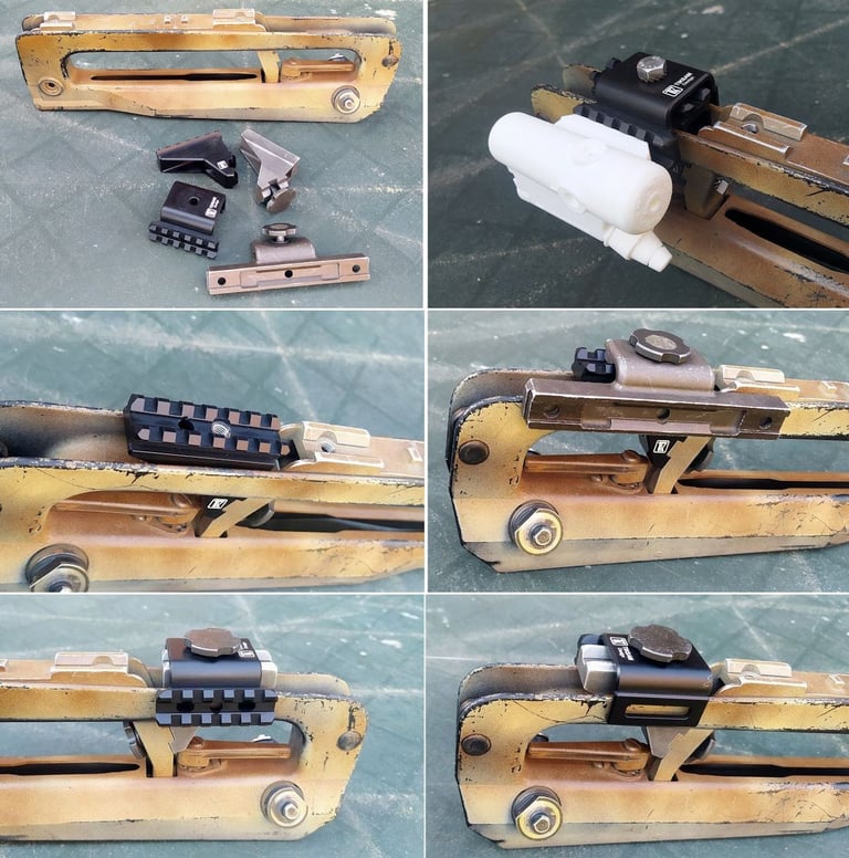 On a bien sur des bricolages aussi à ce niveau pour fixer des rails picatinny, weaver... sur le Rail Supérieur ou le Rail Latéral officiel:
