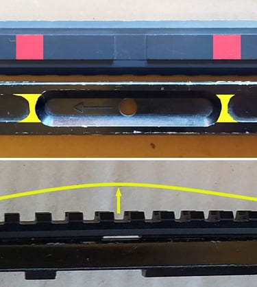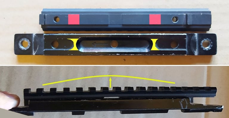 Soit vous rabotez le rail adaptateur au niveau de la zone en rouge, soit vous rabotez le Rail Supérieur au niveau de la zone en jaune.