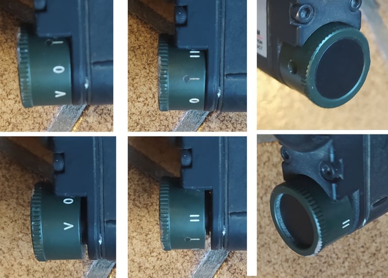 Pour les autres positions (V et II), il faut lever la bague pour pouvoir tourner jusqu'à leurs positions. C'est une sécurité pour ne pas se faire repérer en allumant le laser par inadvertance dans le mauvais mode. En effet, dans le noir, on tourne la bague sans voir ce qui est écrit dessus. Une bonne idée.