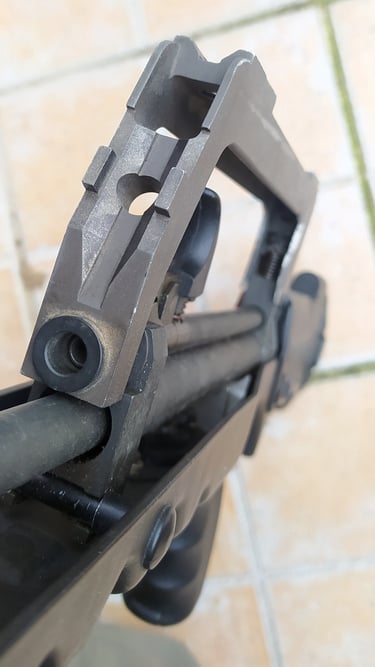Cette partie métallique limitant donc le jeu du garde-main rend possible l'ajout d'une aide à la visée sur un Famas.