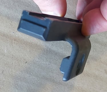 Sur la PGMP l'étrier sert surtout à fixer l'interface de rail sur le corps en plastique de la PGMP. Le trou percée est serti dans la bague.