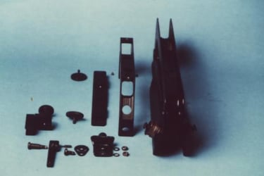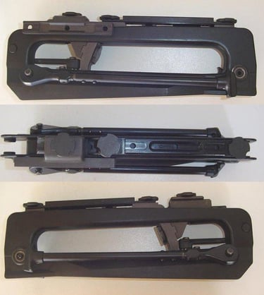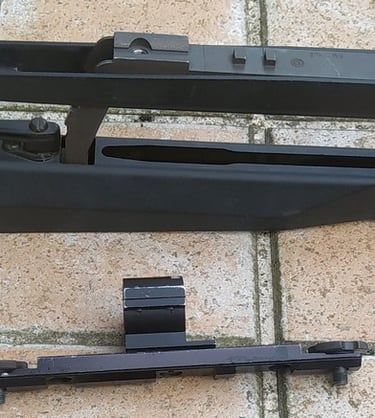 De base, le corps métallique de PGMP ansi que ces rails officiels sont tous sous le format Otan de l'époque pour fixer les optiques. Toutes ces pièces semblent être faite en aluminium moulé haute pression de couleur grisâtre (hormis le Rail Supérieur qui semble fait plus classiquement en aluminium usiné et de couleur noir brillant).