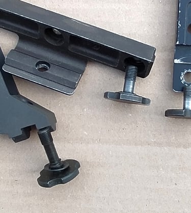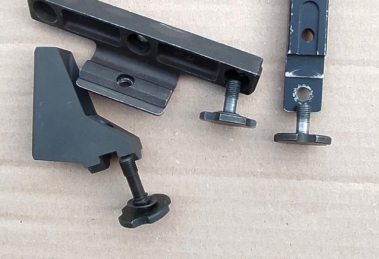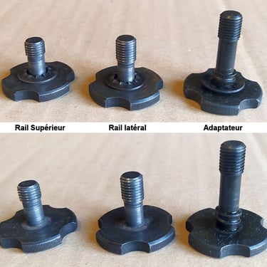 La fixation des rails accessoires se fait, non par des vis, mais par des mollettes en acier de couleur grisâtre elles-aussi.