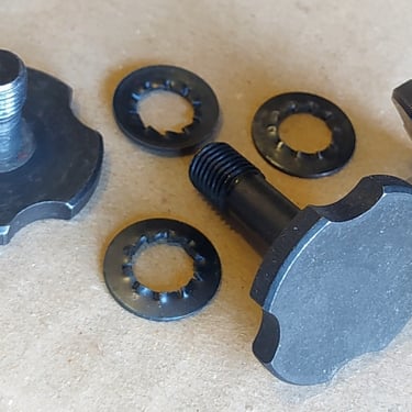 Ces mollettes sont toutes au même filetage: M8 pas fin (1,00mm). Elles ont toutes droit à une rondelle élastique crantée mais elles ont toutes une longueur différentes.