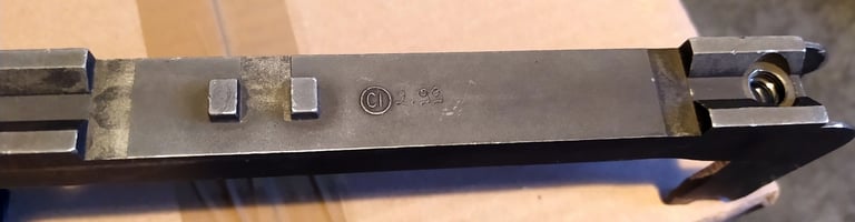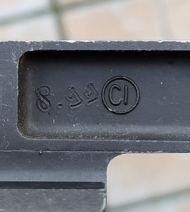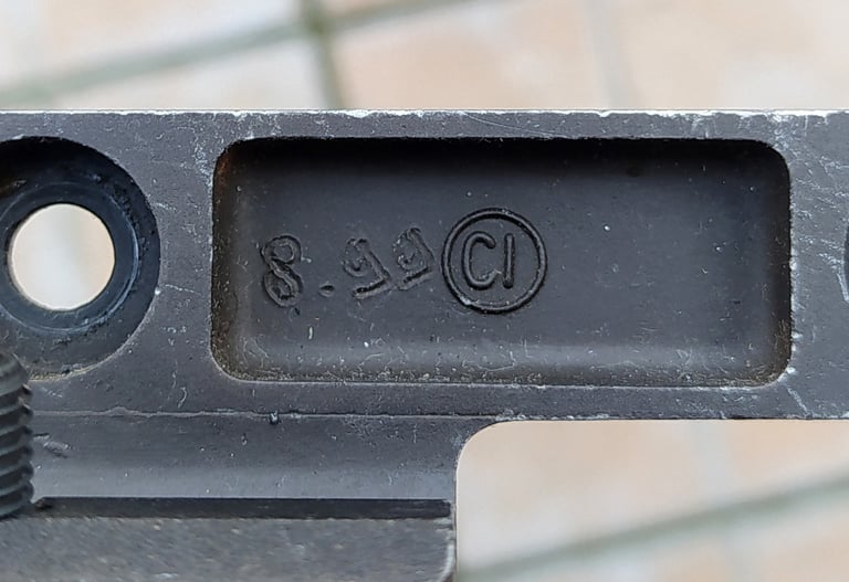 Vous noterez que le Corps Métallique et ses accessoires ne sont pas grisâtre mais bien de couleur noir. Cela pourrait sous-entendre que les 1ères PGMP livrées étaient de couleur noir, comme les 1ers Famas F1. Mais le canon semble avoir était peint en noir aussi et on voit la culasse qui semble encore bien rouillée. Du coup j'ai un doute. Aussi je pencherait pour une remise à neuf pour la revente.