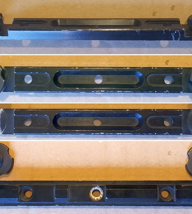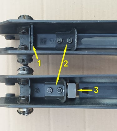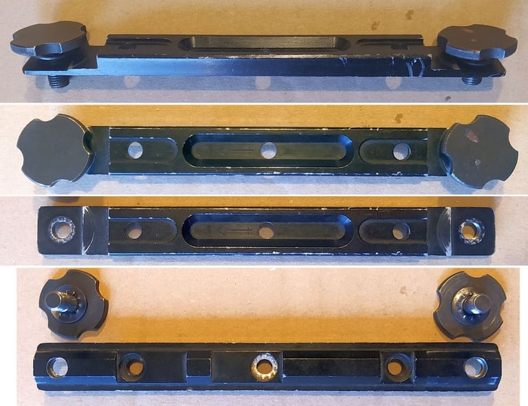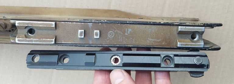 Les 2 trous/petites gorges aux extrémités est un autre standard de fixation d'optique répandu à l'époque, équivalent au FRF1. Ils serviront à fixer la Scrome J4.