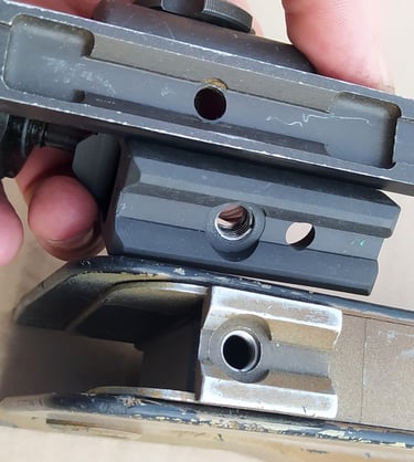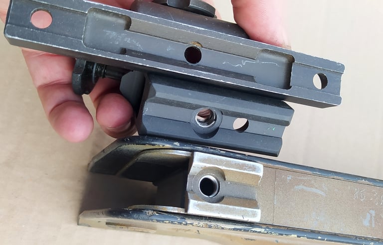 Remarquez que pour fixer l'adaptateur sur le corps métallique, il s'agit encore de la forme du rail otan pour optique.