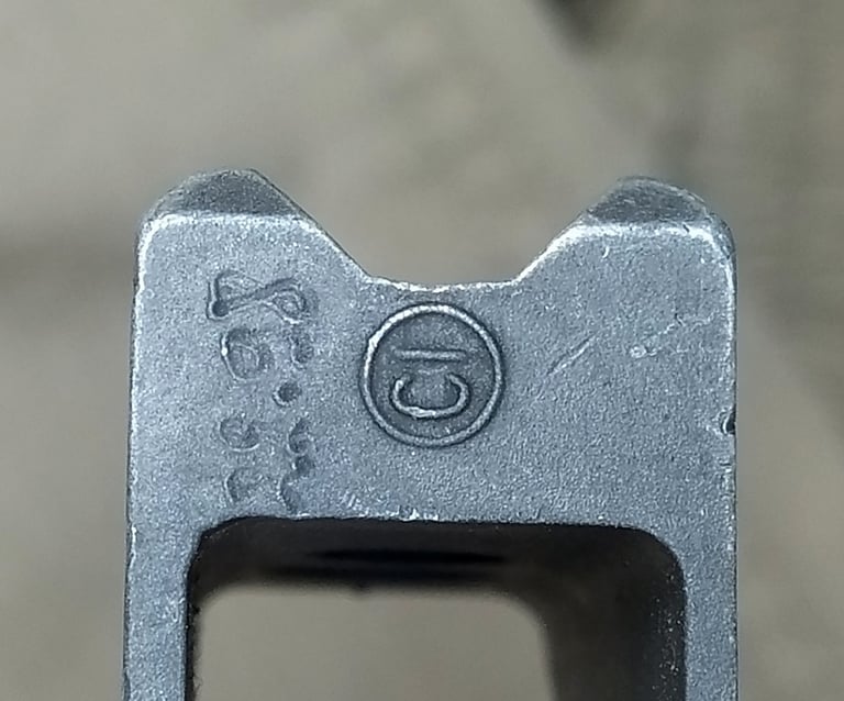 Comme pour le corps métallique de PGMP, l'adaptateur est marqué d'un cercle noté CI en relief et d'une date gravé à la main. Les marquages se situe sur la face arrière.